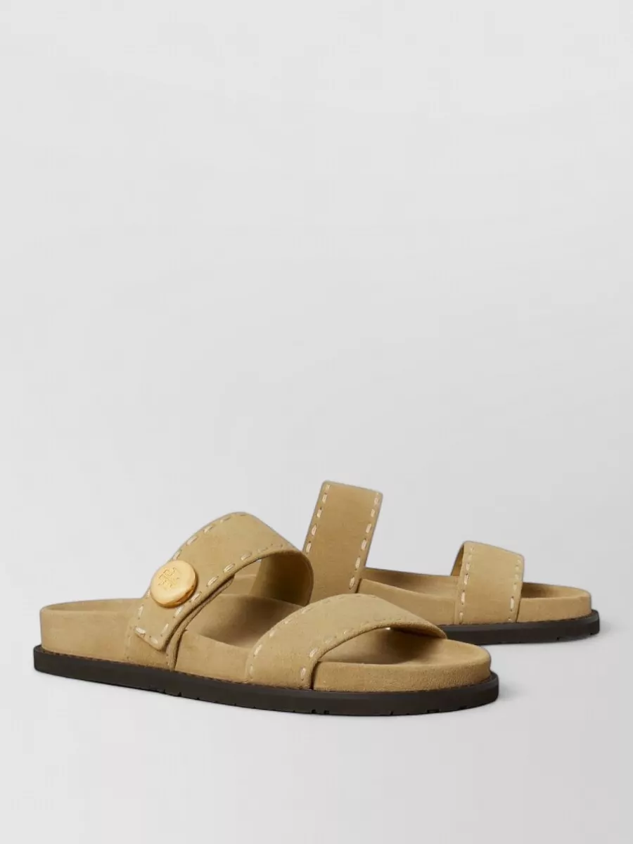 Tory Burch open toe flat sole gold-tone hardware