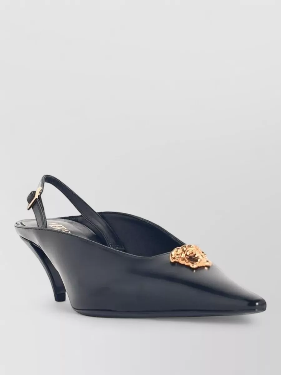 Versace pointed toe kitten heel pumps in printed polyester blend