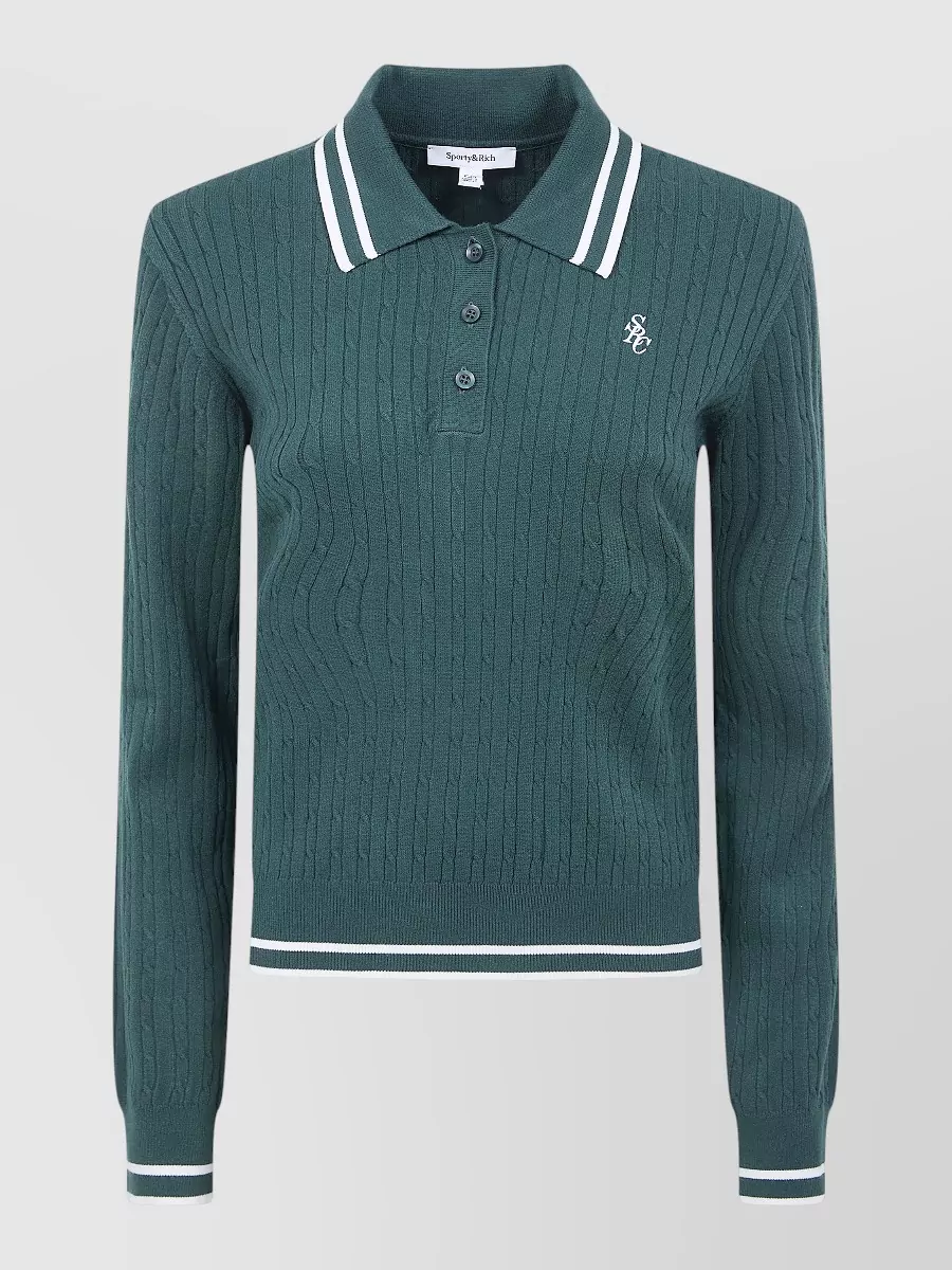Sporty & Rich knit long sleeve polo contrast collar