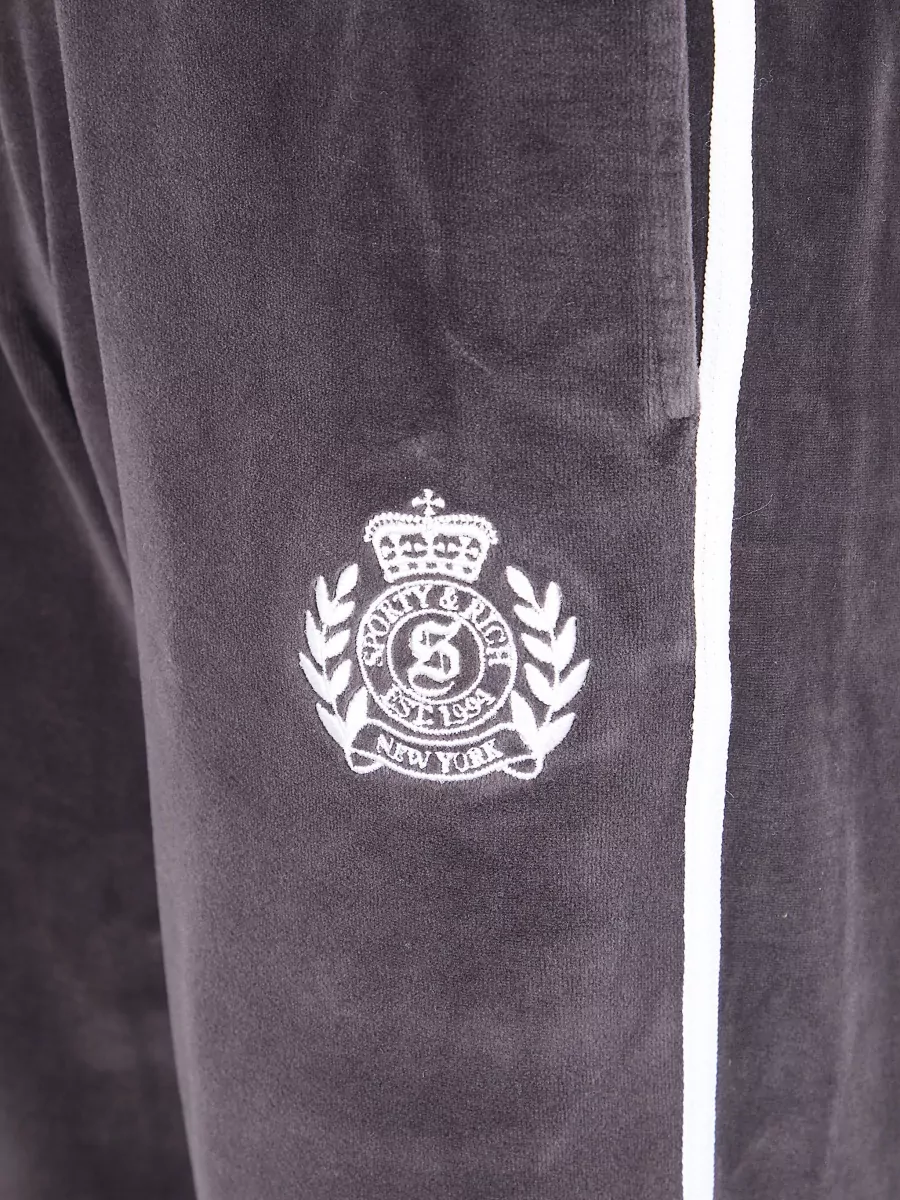 Sporty & Rich crown tennis velour sweatpants side stripes