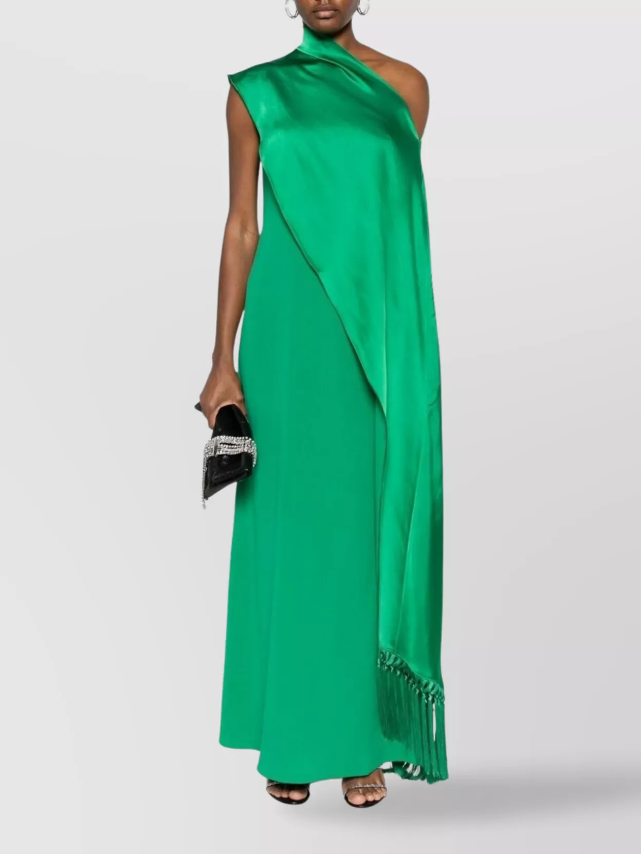 Taller Marmo atlanta dress with asymmetric neck and fringe detailing