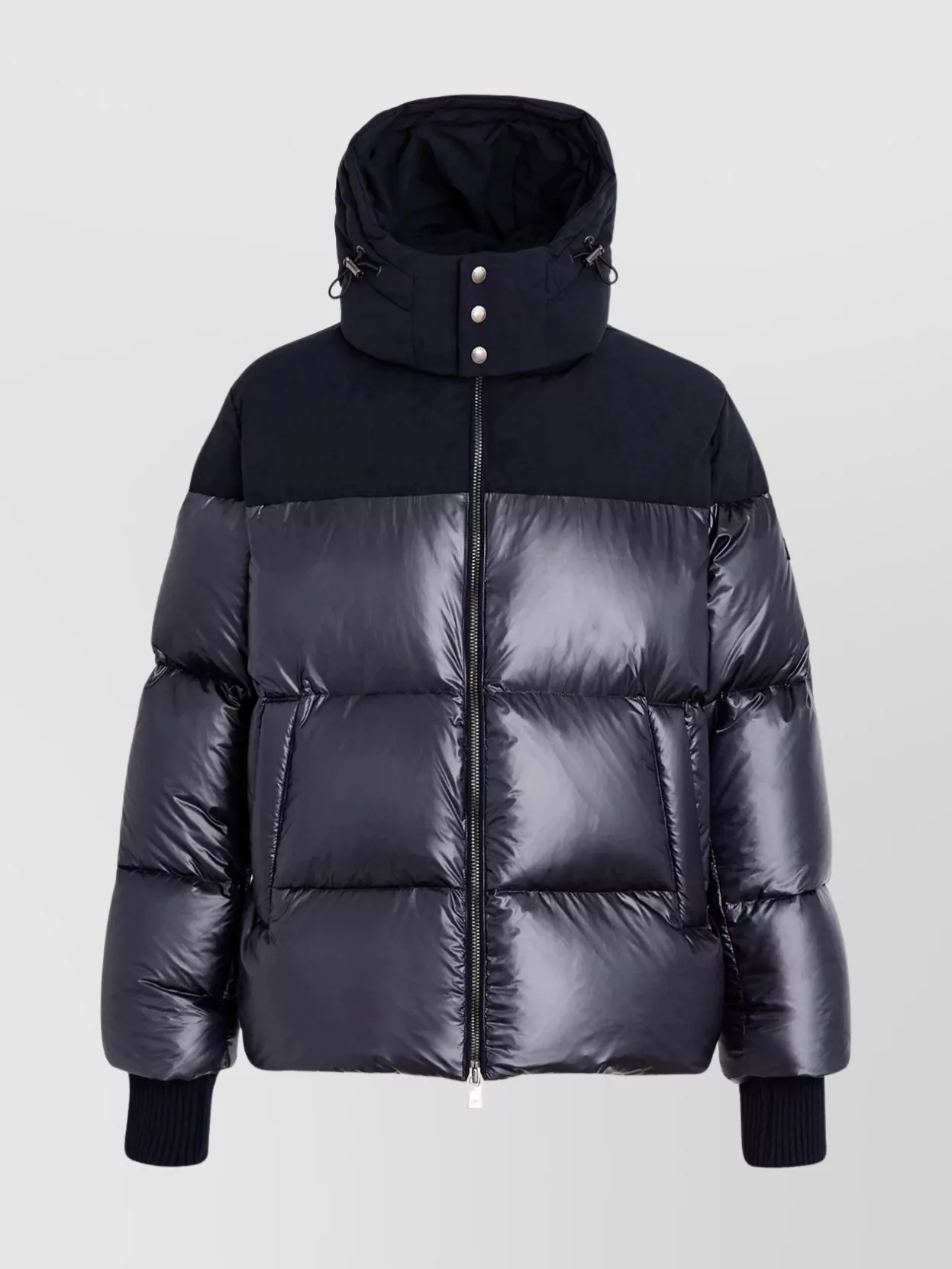 quilted hooded down jacket with adjustable hem
