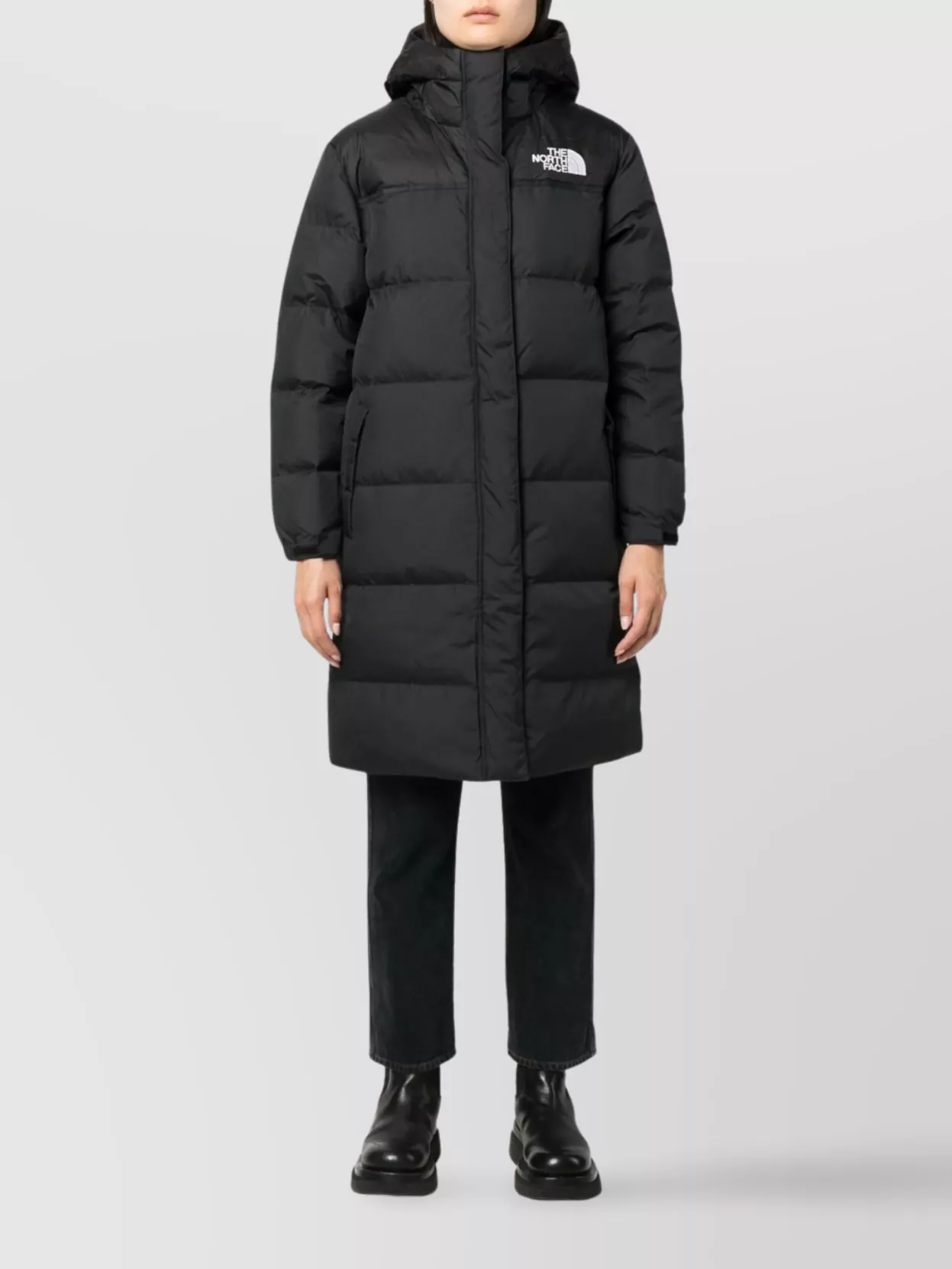 The North Face modern quilted jacket high collar