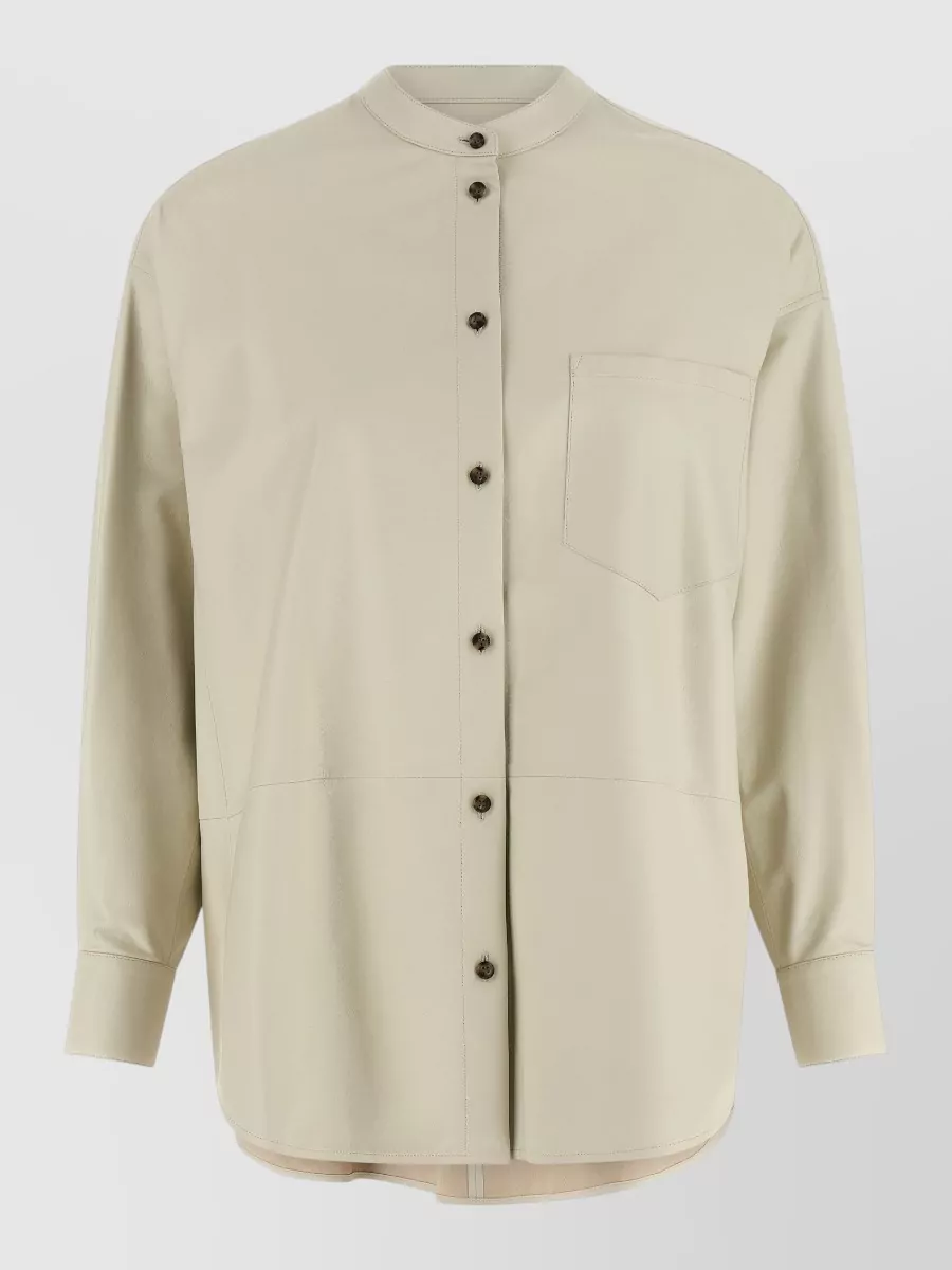 Yves Salomon long sleeve leather shirt chest pocket