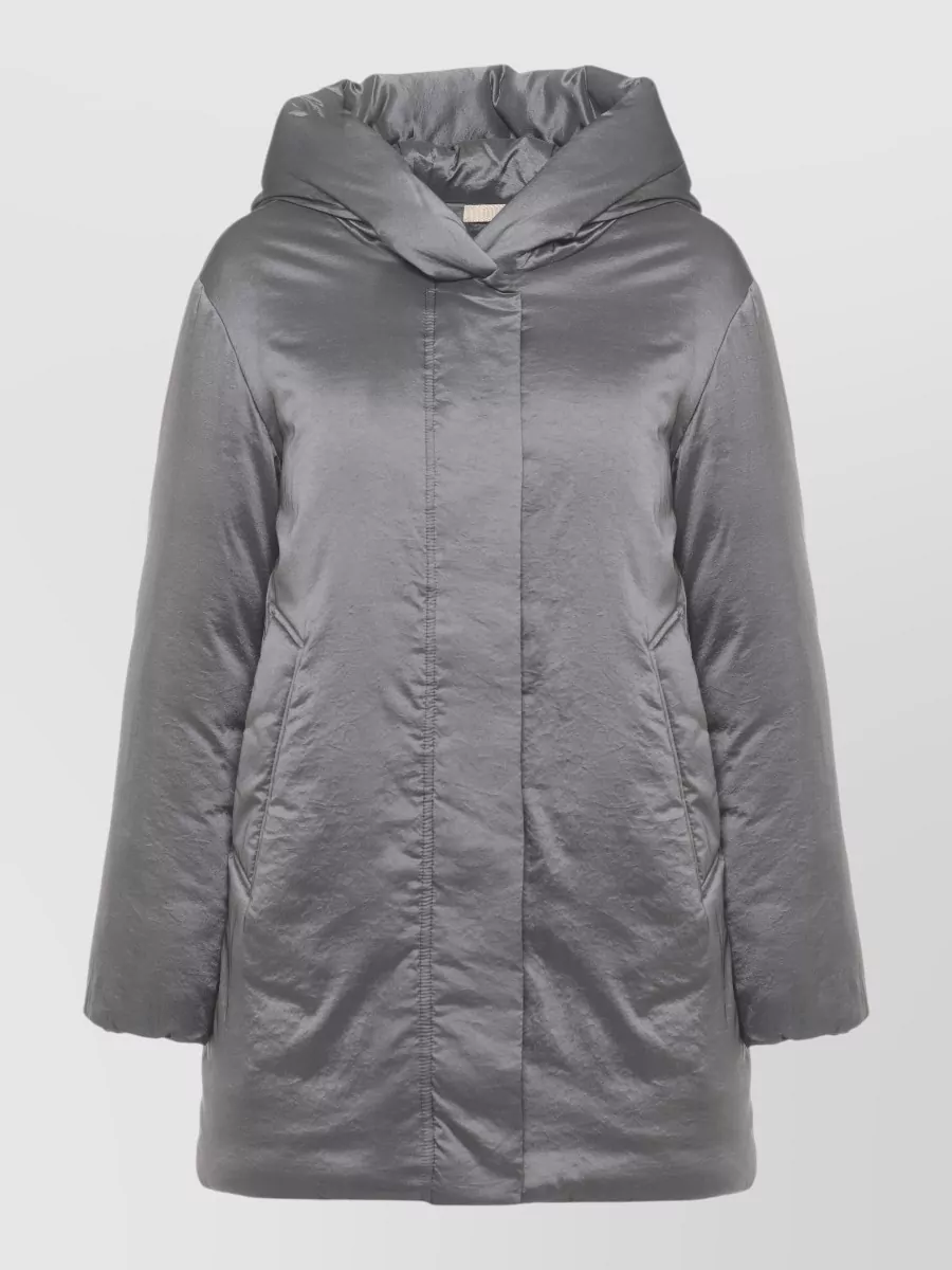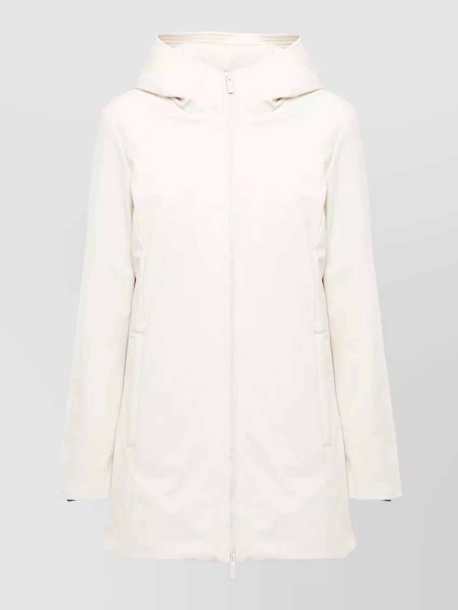 Long hooded parka quilted design pockets