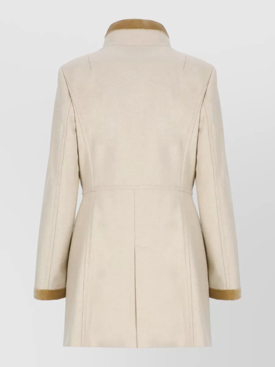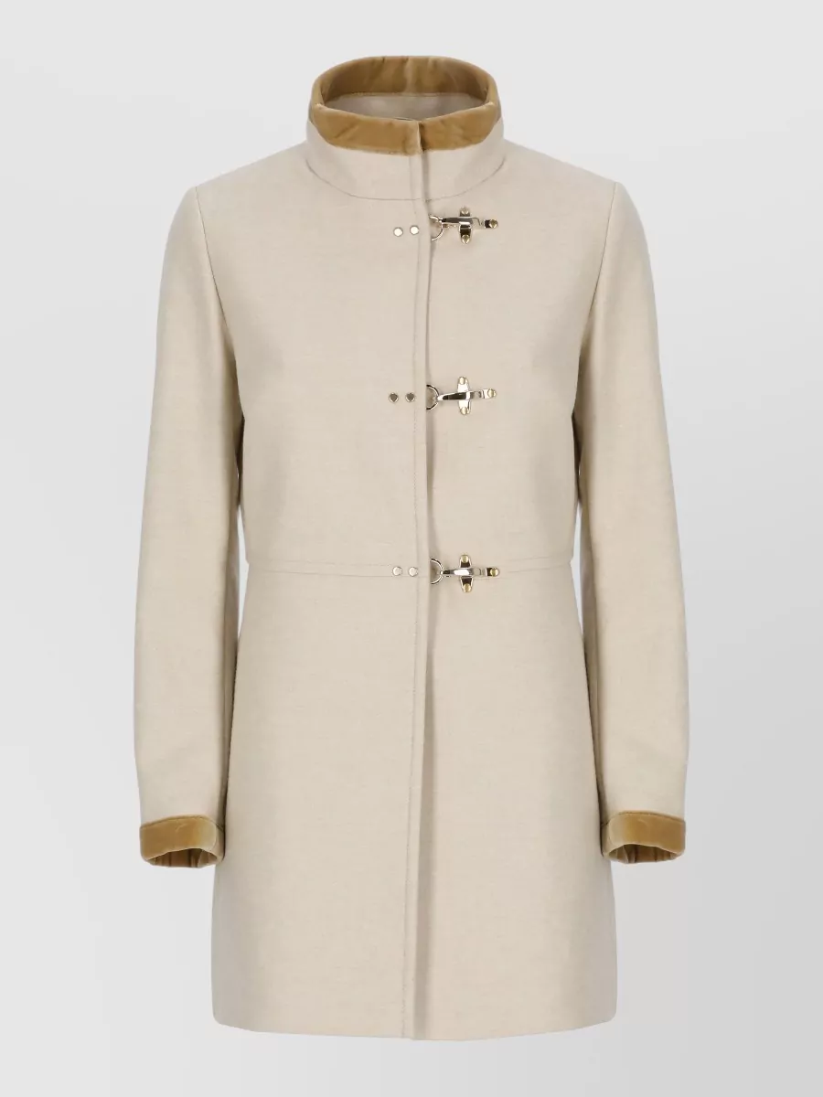 Fay High neck wool coat velvet trims