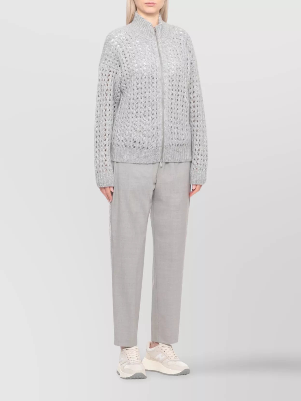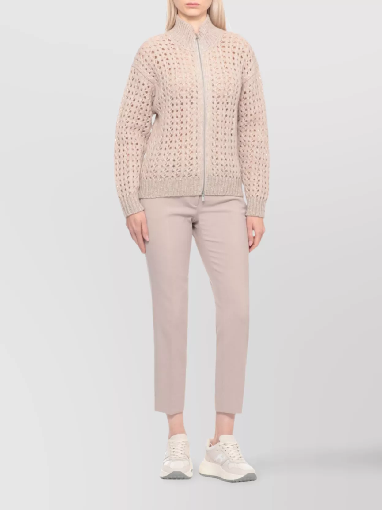 Peserico High neck long sleeve knit cardigan