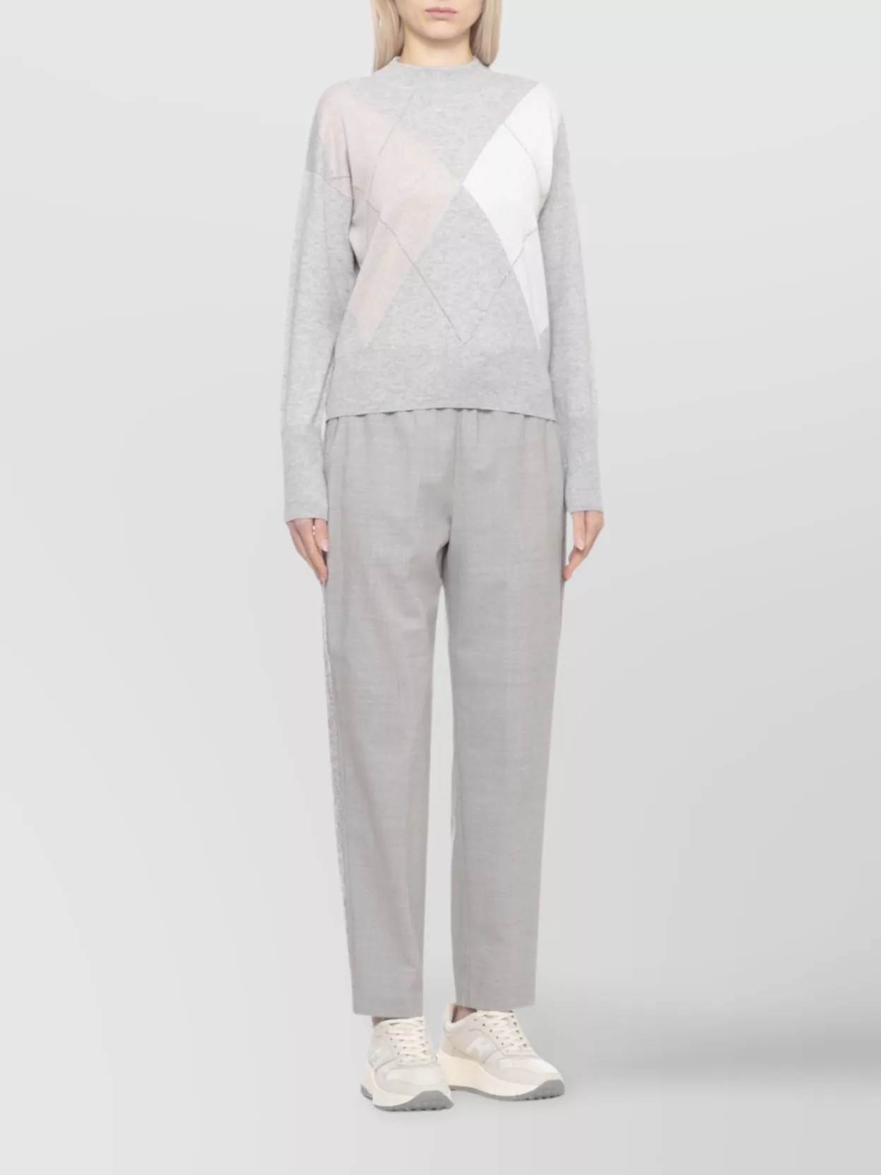 Peserico Argyle knit sweater ribbed cuffs
